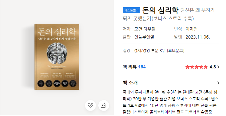 돈의 심리학은 술술 읽힐 정도로 지루하지 않고 재밌었다.